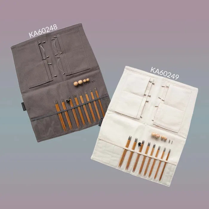 The entire set is packed in the Seeknit Case 2: a nice folding case made of grey or white fabric that closes with an elastic band. The case has small pockets for the interchangeable needle tips and larger pockets for the cables, cable stoppers and joints. Once folded, the case measures 14.5 x 18.5cm. Supplied per 1 set.