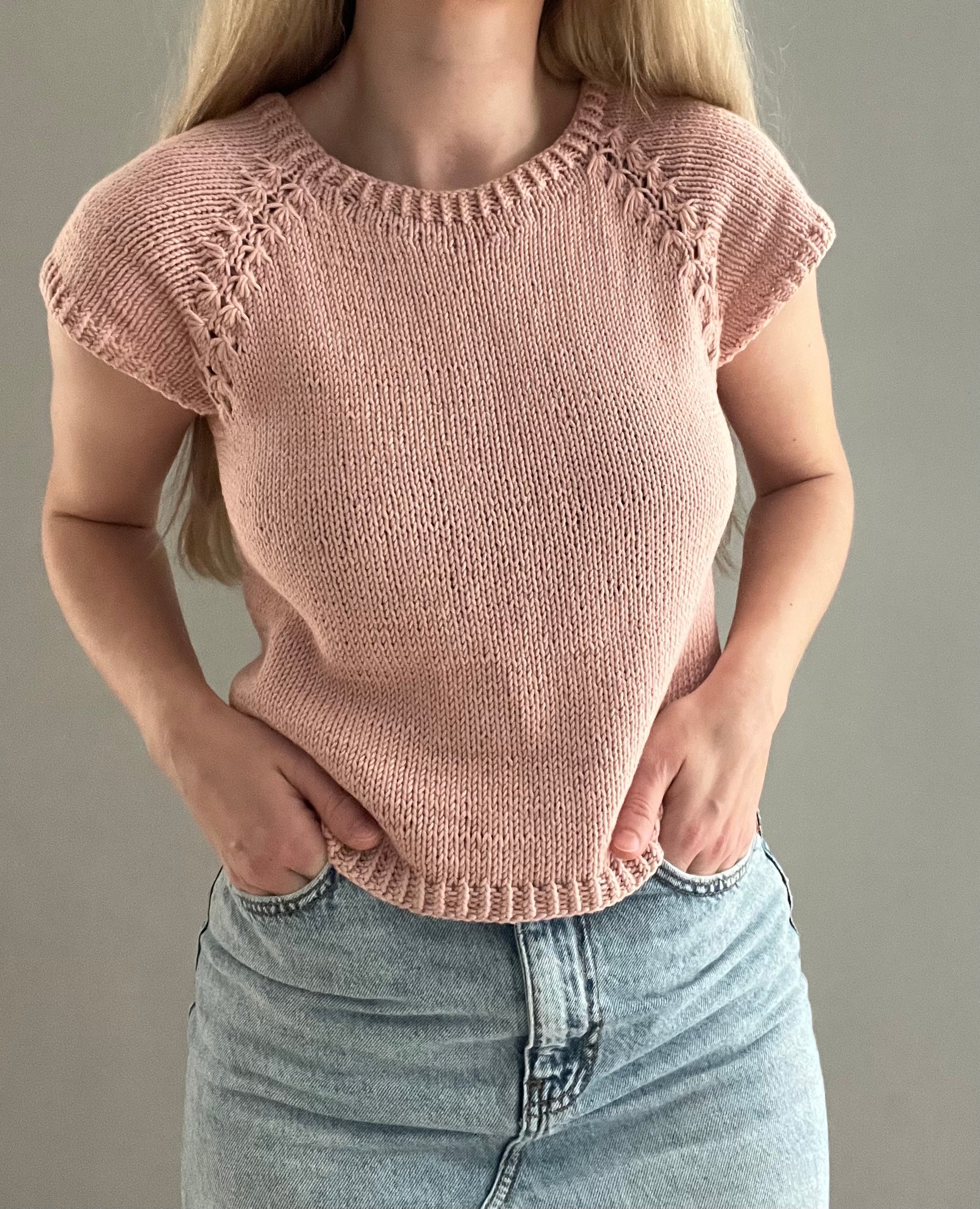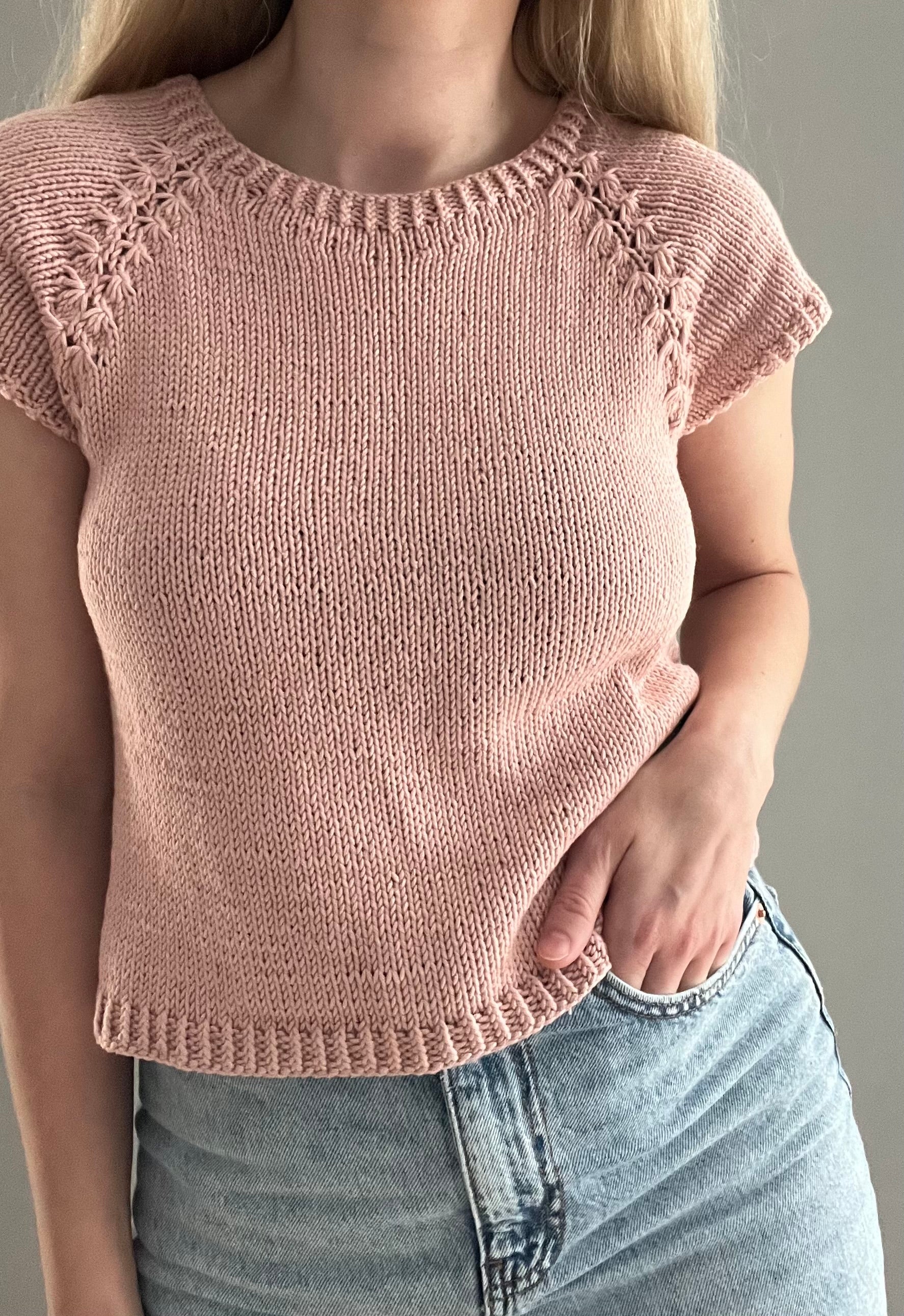Maiciņa tiek adīta apaļadījumā reglānā no augšas uz leju. Maiciņai tiek izadīts priekšpuses noapaļojums ar nepabeigtajām rindām. Tas ir vajadzīgs, lai maiciņas priekšpuse būtu zemāk nekā mugurdaļa – lai tā labāk piegulētu augumam. Pēc nepabeigto rindu izadīšanas, turpināt adīt un veidot reglānu maiciņai. Kad reglāna līnijai ir sasniegts noteikts garums, tad atdalīt stāva daļu no piedurknēm. Pēc atdalīšanas adīt pa apli stāva daļu. Pēc tam adīt abas piedurknes. Maiciņa ir uz auguma, ērtuma pielaide apmēram 5cm.